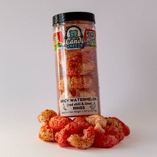Spicy Watermelon Ring Crunch by CandiFreeze – Freeze-Dried, Crunchy, Sweet & Tangy Chili Lime Candy – 1.5oz Resealable Jar